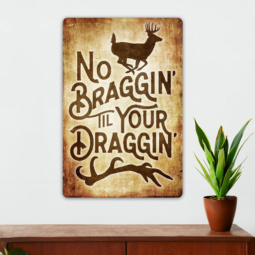 Hunting Wall Decor - No Braggin' Til You're Draggin' - Metal Sign