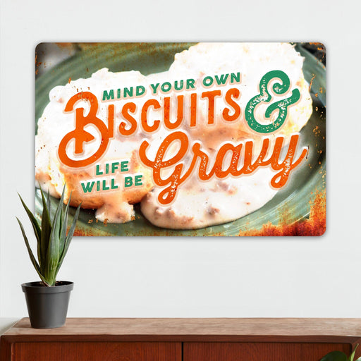 Farmhouse Kitchen Wall Decor - Mind Your Own Biscuits & Life Will Be Gravy - Metal Sign