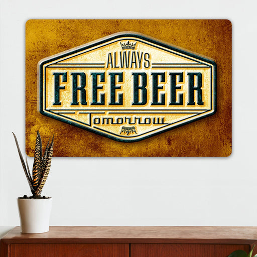 Man Cave Wall Decor - Always Free Beer Tomorrow - Metal Sign