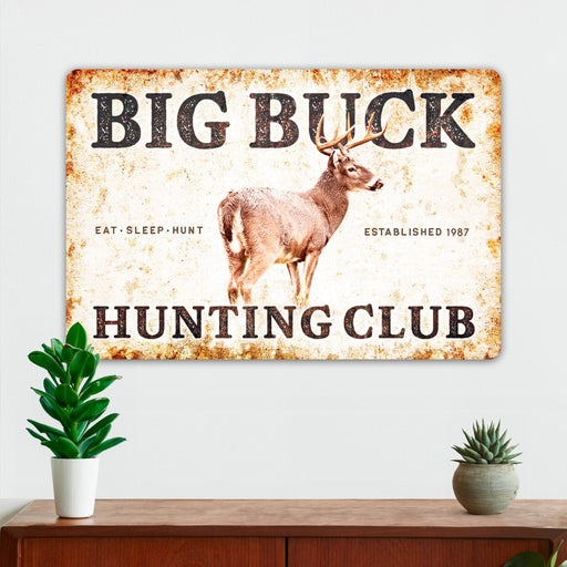 Hunting Wall Decor - Big Buck Hunting Club - Metal Sign