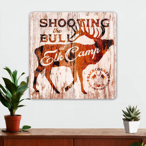 Hunting Wall Decor - Shooting The Bull At Elk Camp - Metal Sign