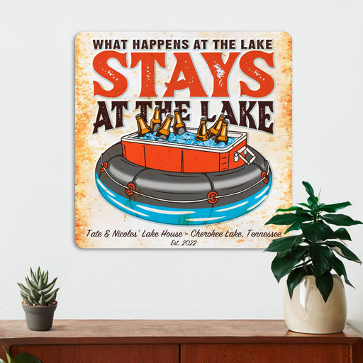 Lakehouse Wall Decor - What Happens at the Lake, Stays At The Lake - Metal Sign