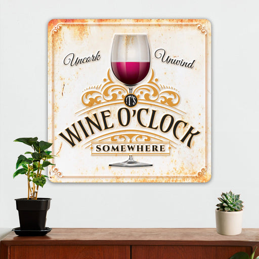 Wine Wall Decor - It's Wine O'Clock Somewhere - Metal Sign