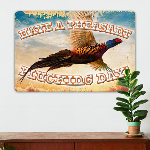 Hunting Wall Decor - Have A Pheasant Plucking Day - Metal Sign