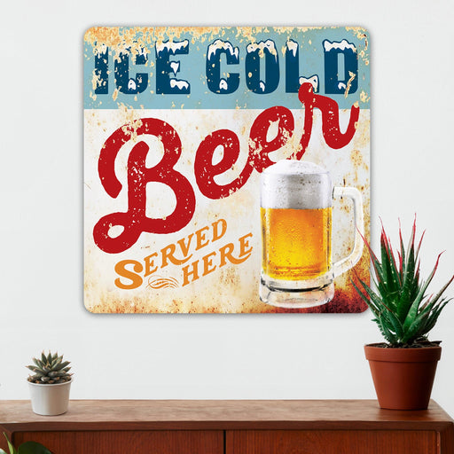 Man Cave Wall Decor - Ice Cold Beer Served Here - Metal Sign
