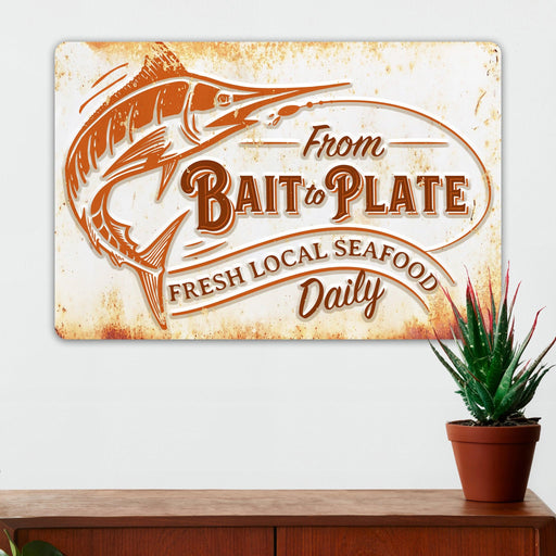 Fishing Wall Decor - Bait to Plate - Marlin - Metal Sign