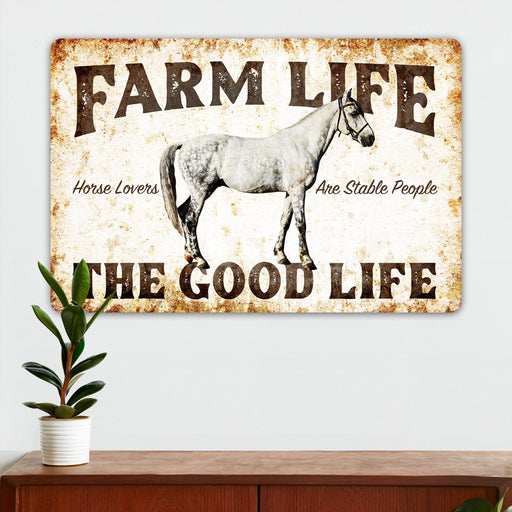 Farm Life - Horse (White) - Farmhouse Wall Decor - Metal Sign