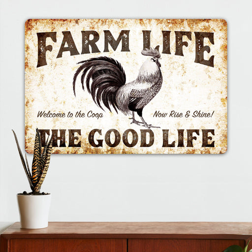 Farm Life - Rooster - Farmhouse Wall Decor - Metal Sign
