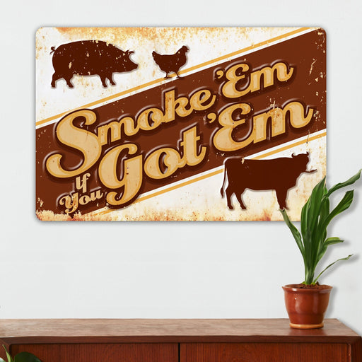 Farmhouse Kitchen Wall Decor - Smoke 'Em If You Got 'Em - Metal Sign