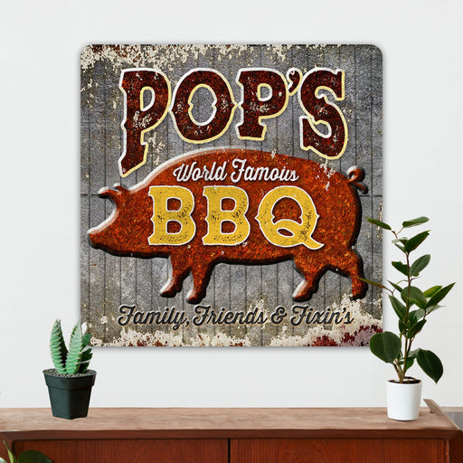 Kitchen Wall Decor - POP'S World Famous BBQ - Metal Sign