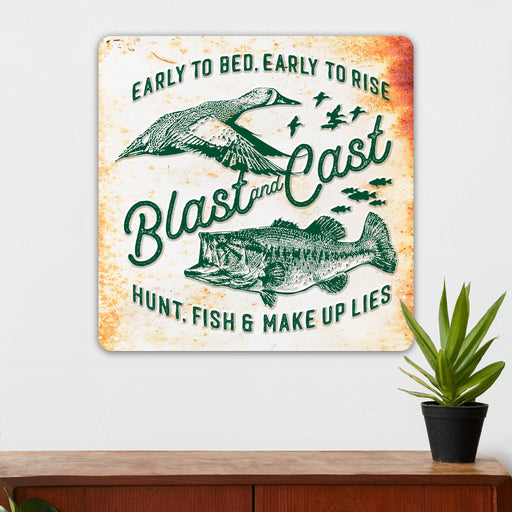 Fishing and Hunting Wall Decor - Blast and Cast - Duck & Fish - Metal Sign