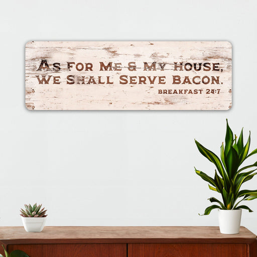 Farmhouse Kitchen Wall Decor - As For Me & My House, We Shall Serve Bacon - Metal Sign