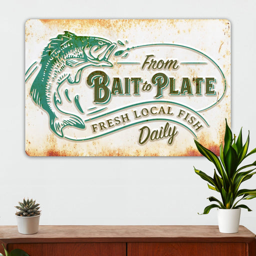 Fishing Wall Decor - Bait to Plate - Bass - Metal Sign