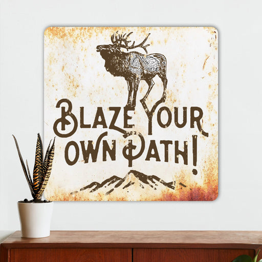 Sunshine CornerIn stockDo you love hearing the majestic bugle & chasing big game through the mountains? "Blaze Your Own Path" is the perfect metal sign for all elk e...