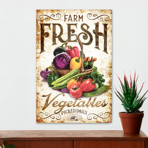 Farmhouse Kitchen Wall Decor - Farm Fresh (Vegetables) - Canvas Sign