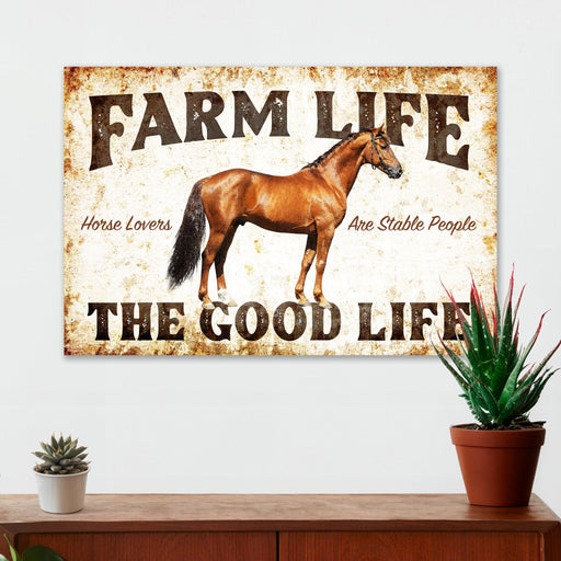 Farmhouse Wall Decor - Farm Life (Bay Horse) - Canvas Sign