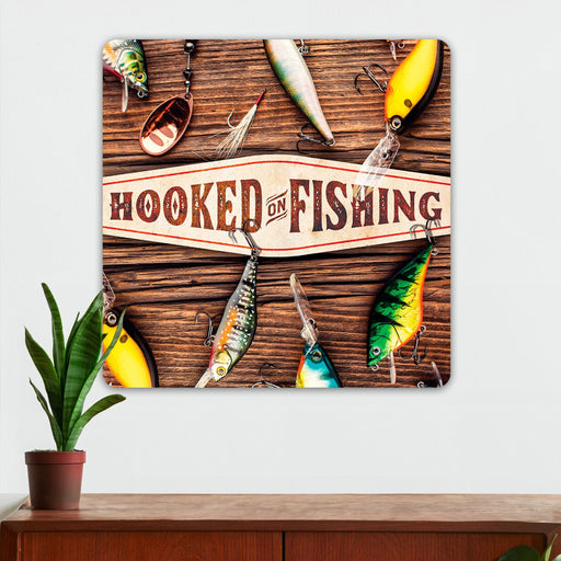 Fishing Wall Decor - Hooked on Fishing - Metal Sign