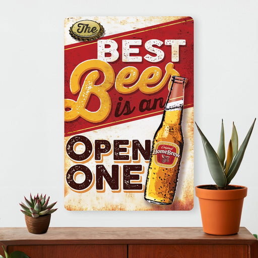 Man Cave Wall Decor - The Best Beer is an Open One - Metal Sign