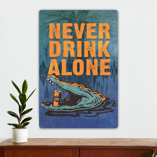 Man Cave Wall Decor - Never Drink Alone - Metal Sign